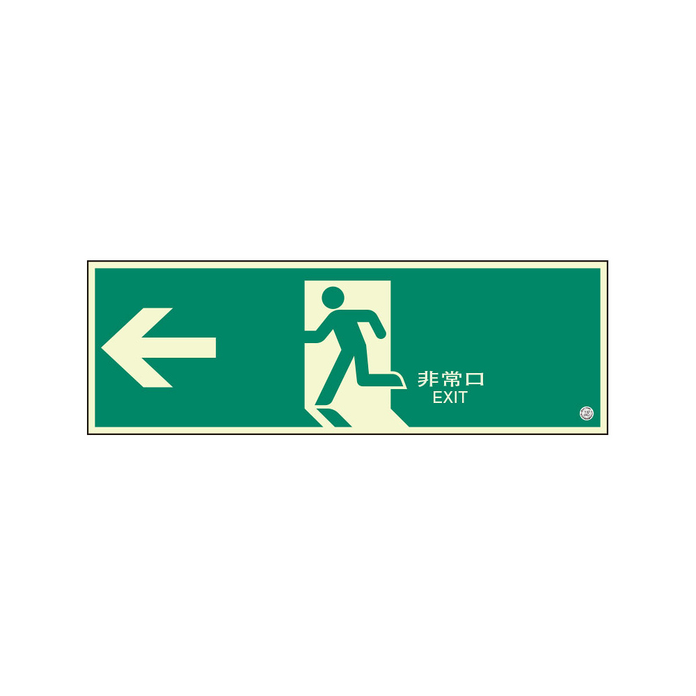 商品説明:蓄光・非常口 (避難口) 誘導標識 左矢印 300×900 (824-05B)