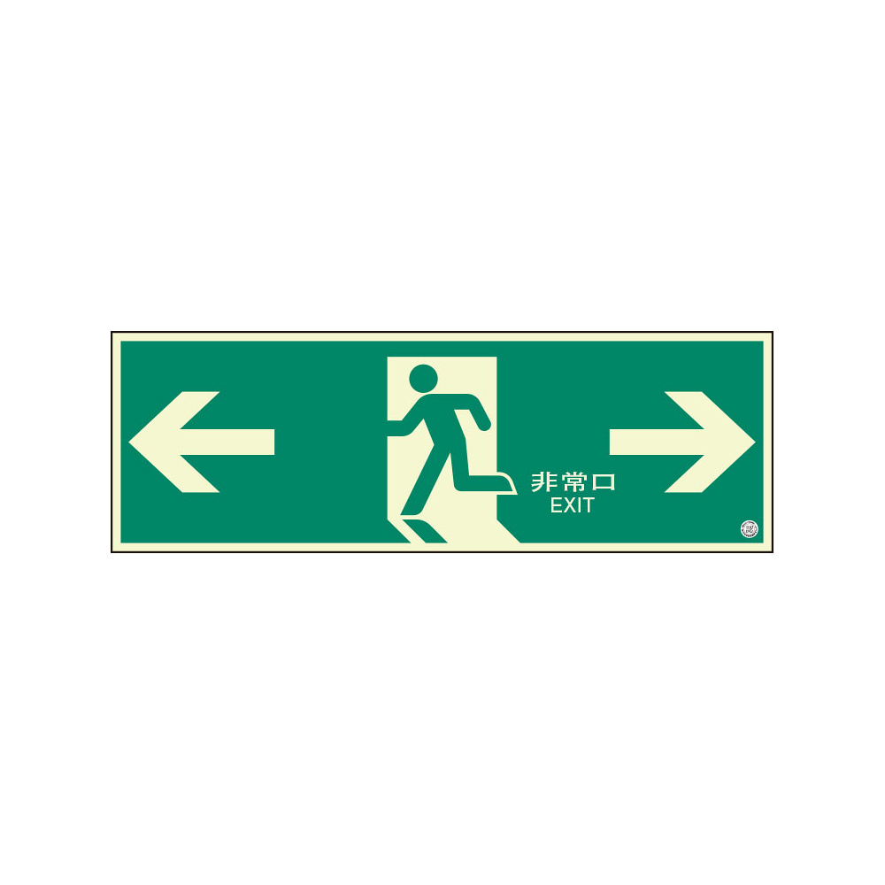 商品説明:蓄光・非常口 (避難口) 誘導標識 両方矢印 300×900 (824-07B)