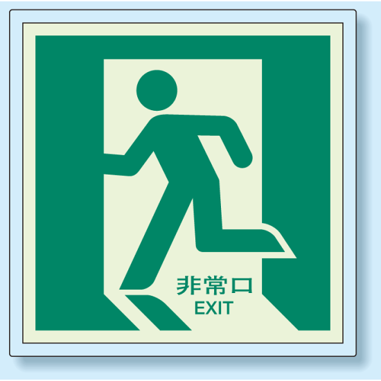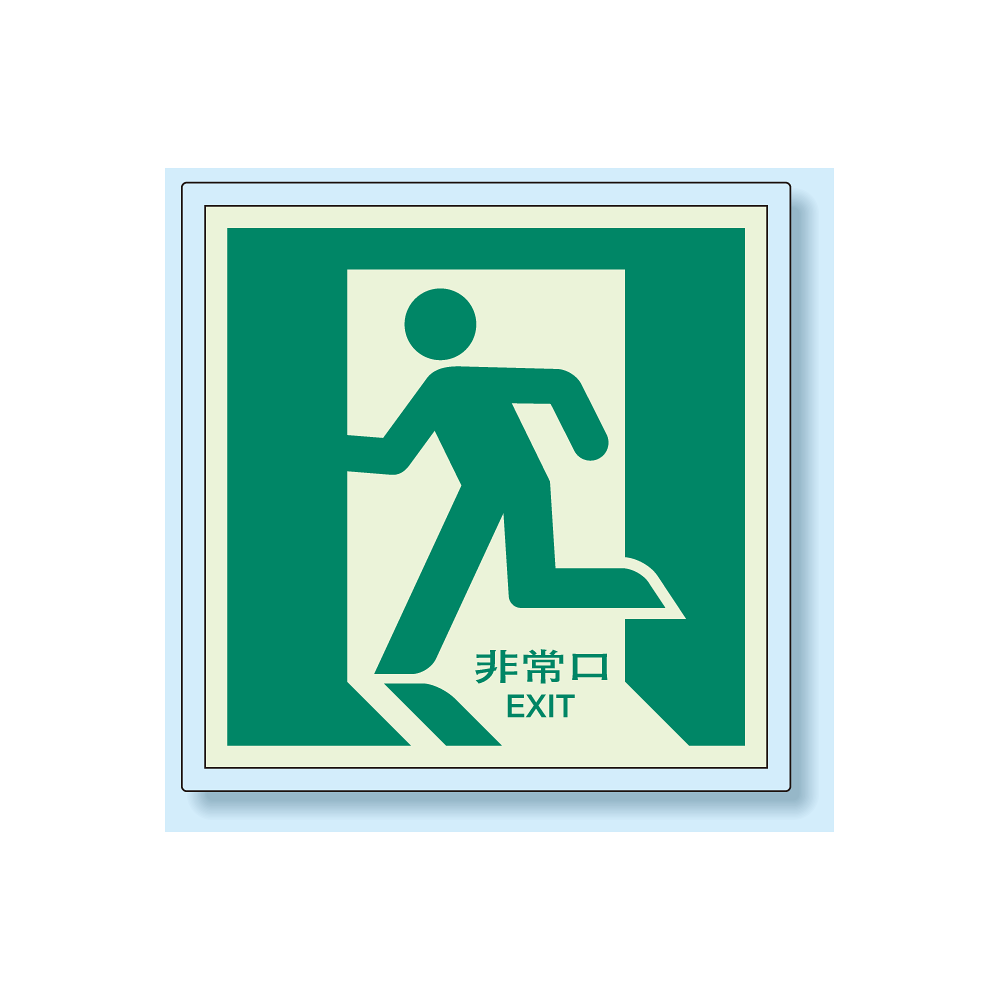 非常口 (避難口) 誘導標識蓄光ステッカー 左向き 500×500 (824-14)