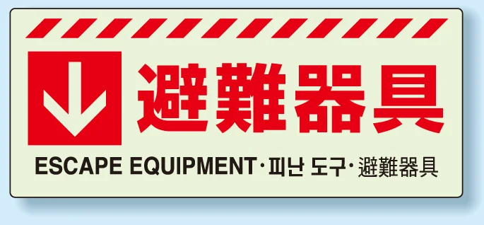 災害標識 避難器具 蓄光ステッカー 150×360 (831-45)