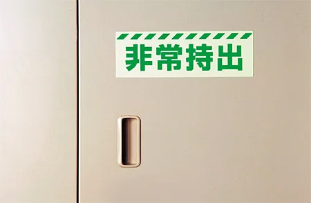 - 非常持出の収納場所や保管扉に貼って、備蓄品の位置を把握しやすくする蓄光ステッカーです。