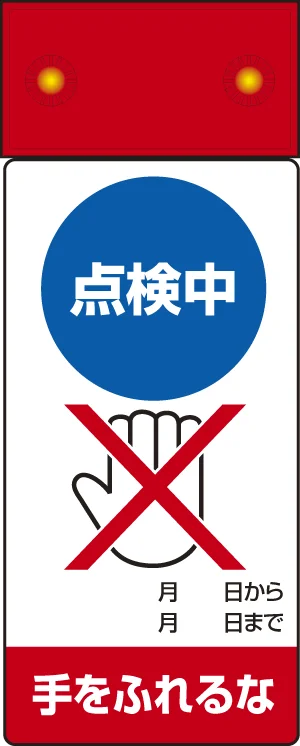 - 点検中の設備に手を触れないよう周知したい場面に適したLED付き標識です。