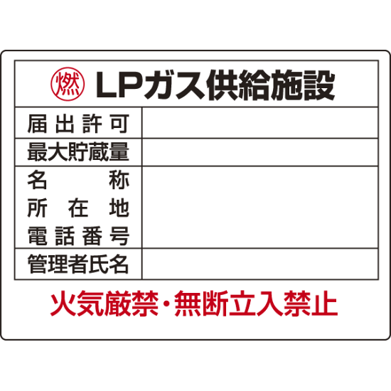 商品説明:LPガス供給施設 ボード 450×600 (827-63)