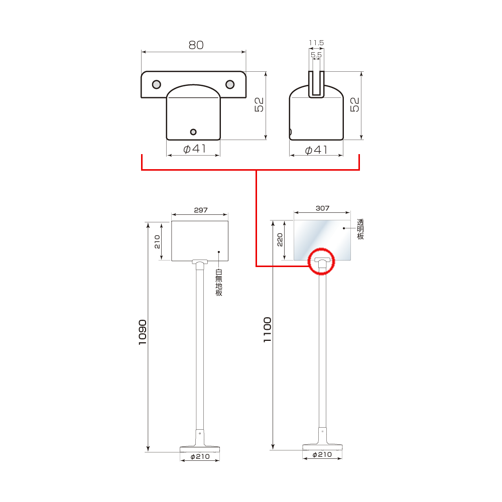 - ポール:ステンレス 台座:ポリエチレン(鉄ウェイト入り) 先端ホルダー:鉄 (メッキ仕上げ)