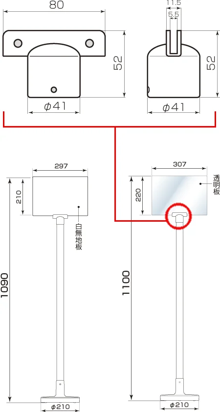 - 210φ×1095mmH 表示部:210×297×5mm厚