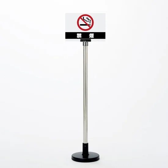 美しいステンレスのポールに簡単に表示板を取り付けることで、様々なところでおしゃれにサインを表示できます。禁煙案内をすっきり見やすく掲示できる、ステンレスポール仕様のサインボードスタンド。