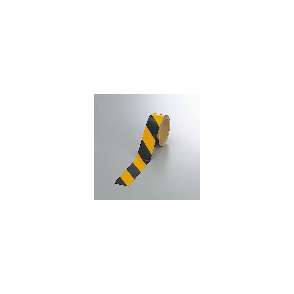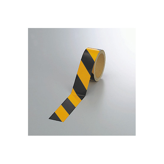 - 反射トラテープ (セパ付) 黒/黄 45mm幅×10m巻 (374-05)