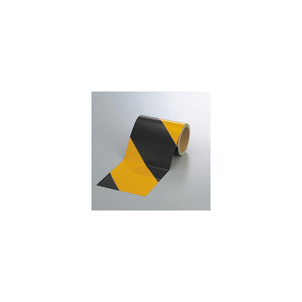 商品説明:反射トラテープ (セパ付) 黒/黄 150mm幅×10m巻 (374-07)
