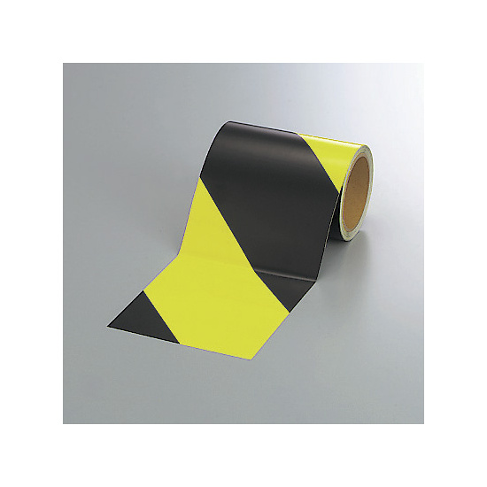 蛍光反射トラテープ (セパ付) 黒/黄 150mm幅×10m巻 (864-62)