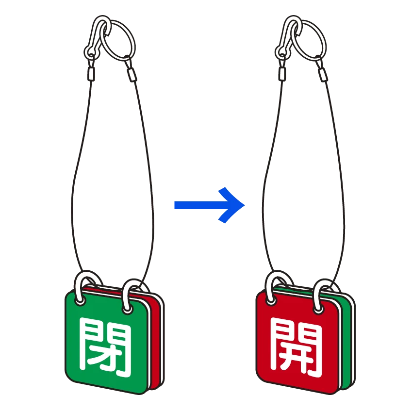 「バルブ開閉表示板 両面 マグネットロック式 赤開/緑閉 5セット1組 (857-62)」の導入をご検討中ですか? 大量注文・複数台のご検討に応じたお見積りのご相談、最短納期や送料、仕様・サイズの確認など、 吊下げ バルブ開閉札選びをまとめてサポートいたします。