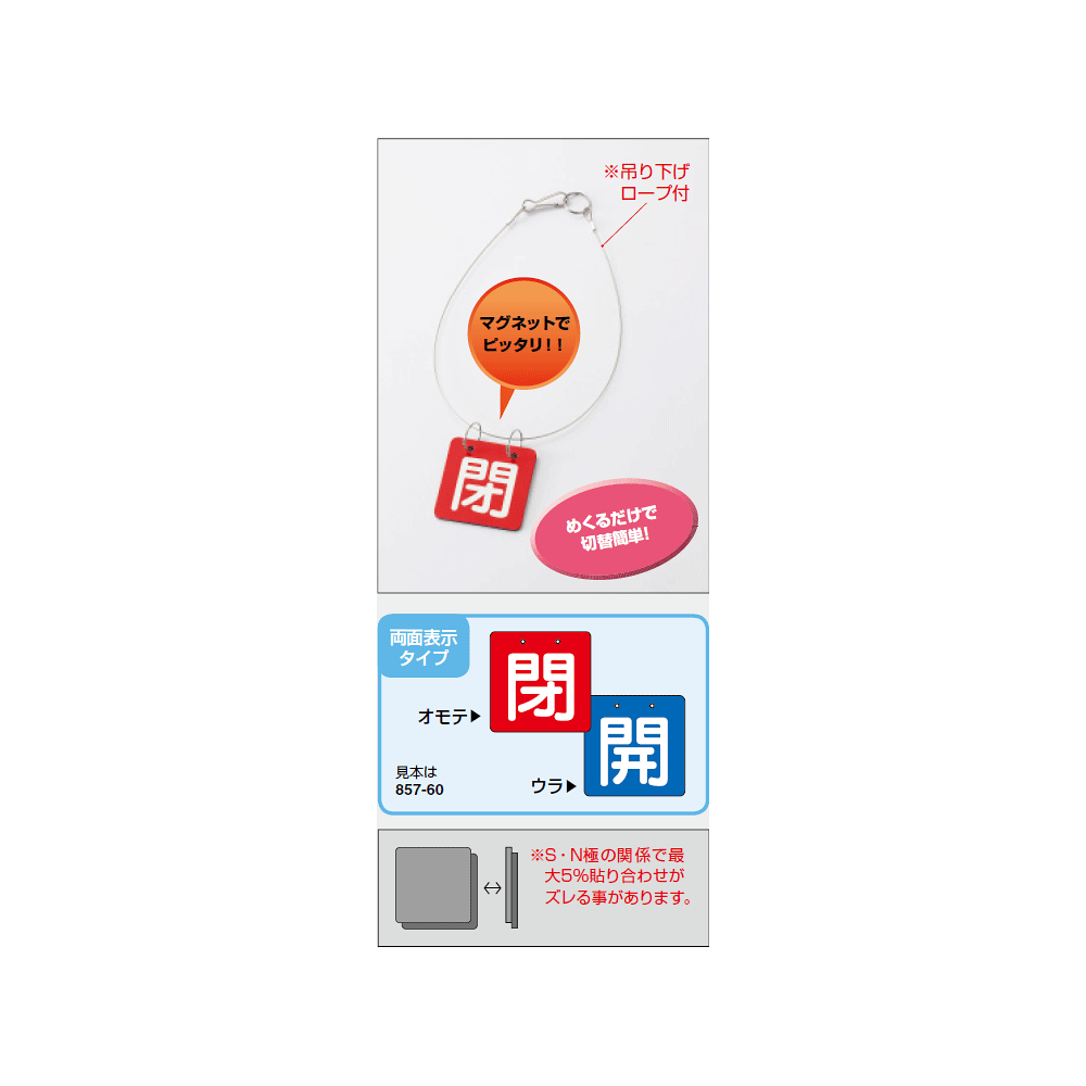 ■詳細説明/バルブ開閉表示板 両面 マグネットロック式