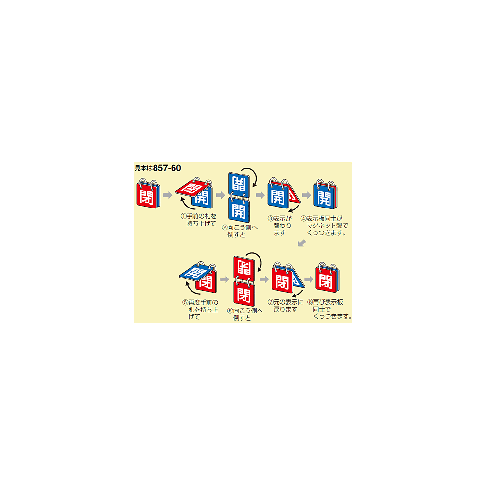 ■ご使用方法/バルブ開閉表示板 両面 マグネットロック式