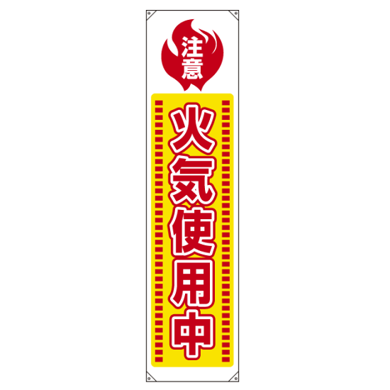 商品説明:たれ幕 火気使用中 1800×450 (820-65)