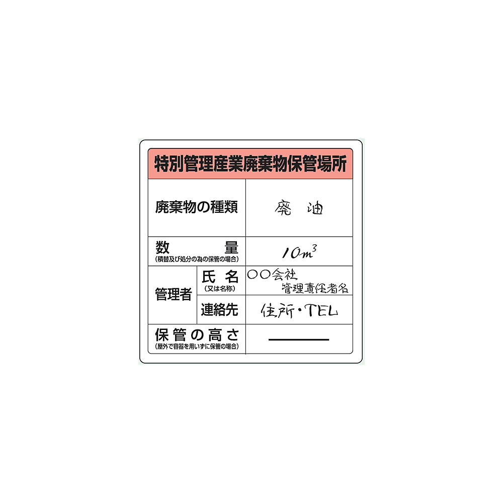 - ※標識内下段「保管の高さ」には、屋外で容器を用いずに保管する場合のみ記入します。