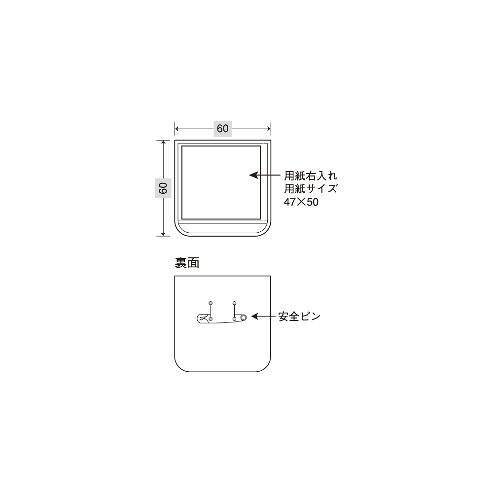 - 材 質:軟質ビニール(スポンジ入・安全ピン・記入用紙47×50mm1枚付)