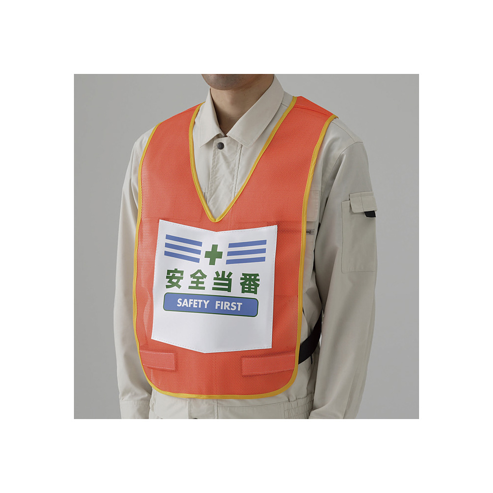 商品説明:両面表示付ベスト 蛍光オレンジ 安全当番 (873-92R)