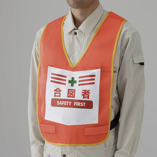 商品説明:両面表示付ベスト 蛍光オレンジ 合図者 (873-95R)