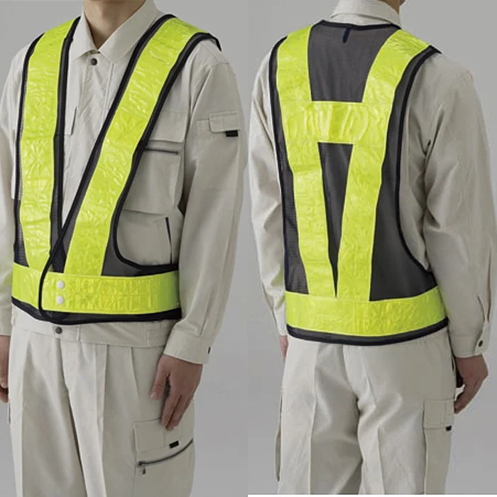 反射ベスト ポリス型 紺/レモンイエロー フリーサイズ (379-38)