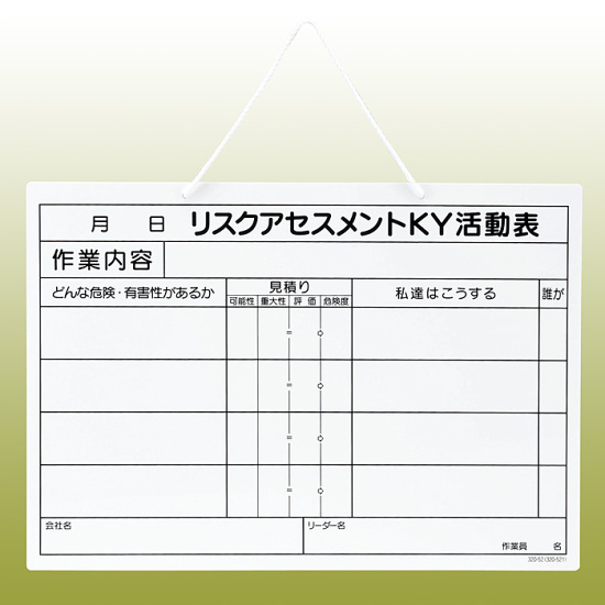 商品説明:リスクアセスメントKY活動表ボード・ヒモ付 297×420 (320-52)