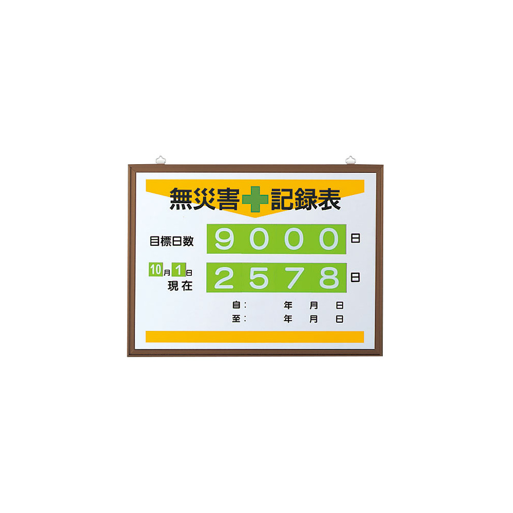 商品説明:無災害記録表 イエローライン カラー鉄板/アルミ枠 450×600 (867-17A)