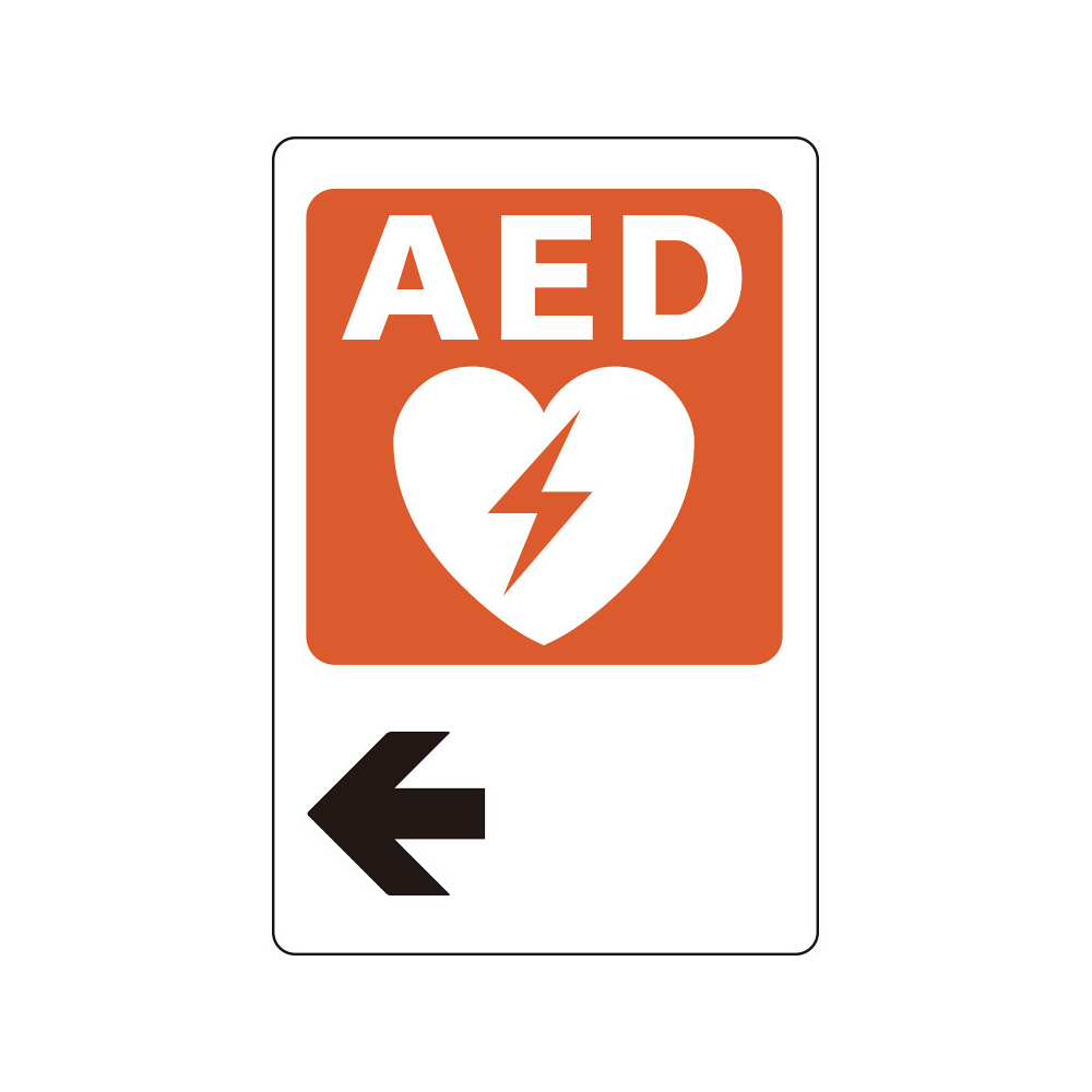 商品説明:AED誘導用標識 (左矢印) ステッカー 300×200 (831-02A)