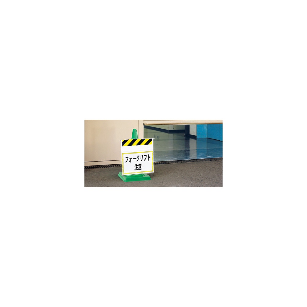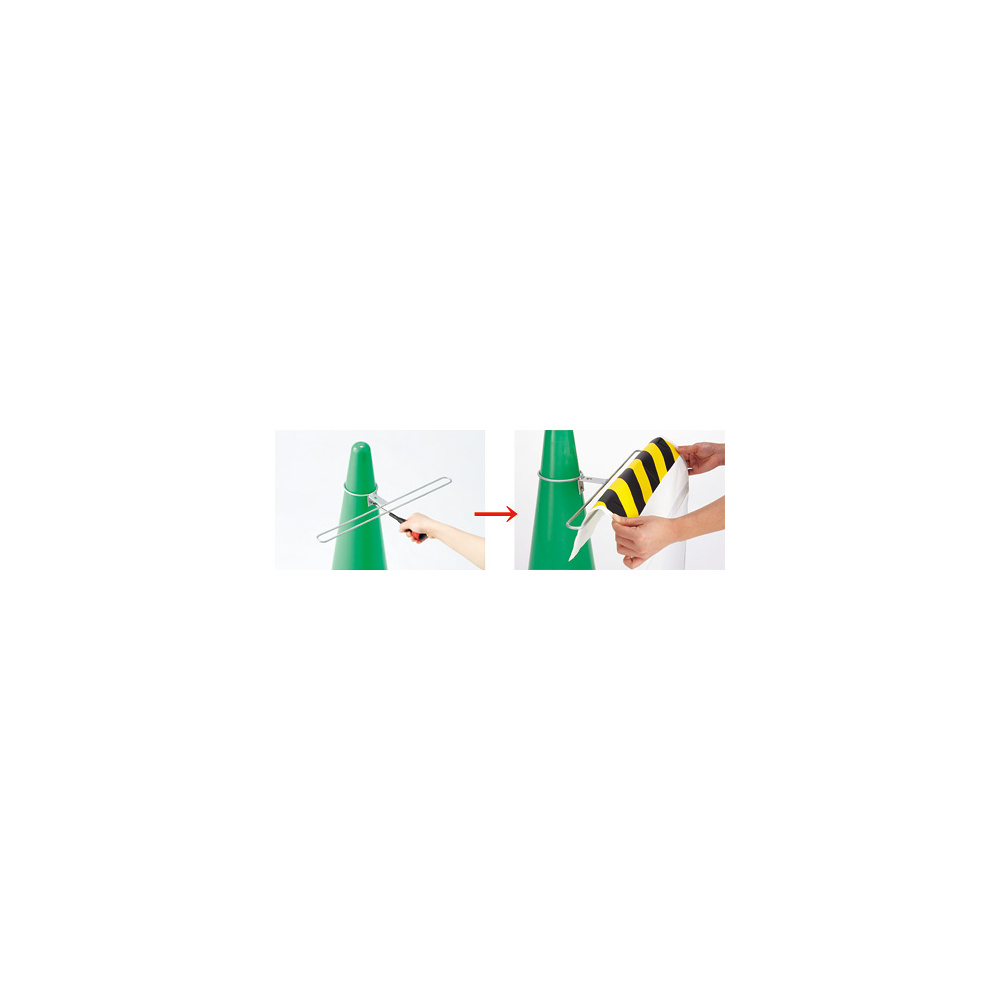 - ●ワンタッチ取付標識がコーンに簡単に設置できます。