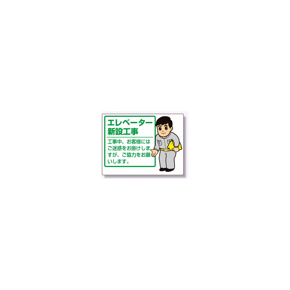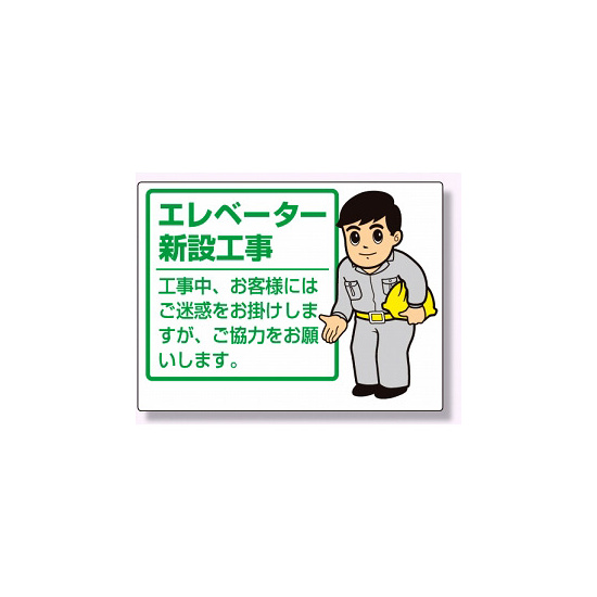 商品説明:お願い看板 表示内容:エレベーター新設工事 (301-53)