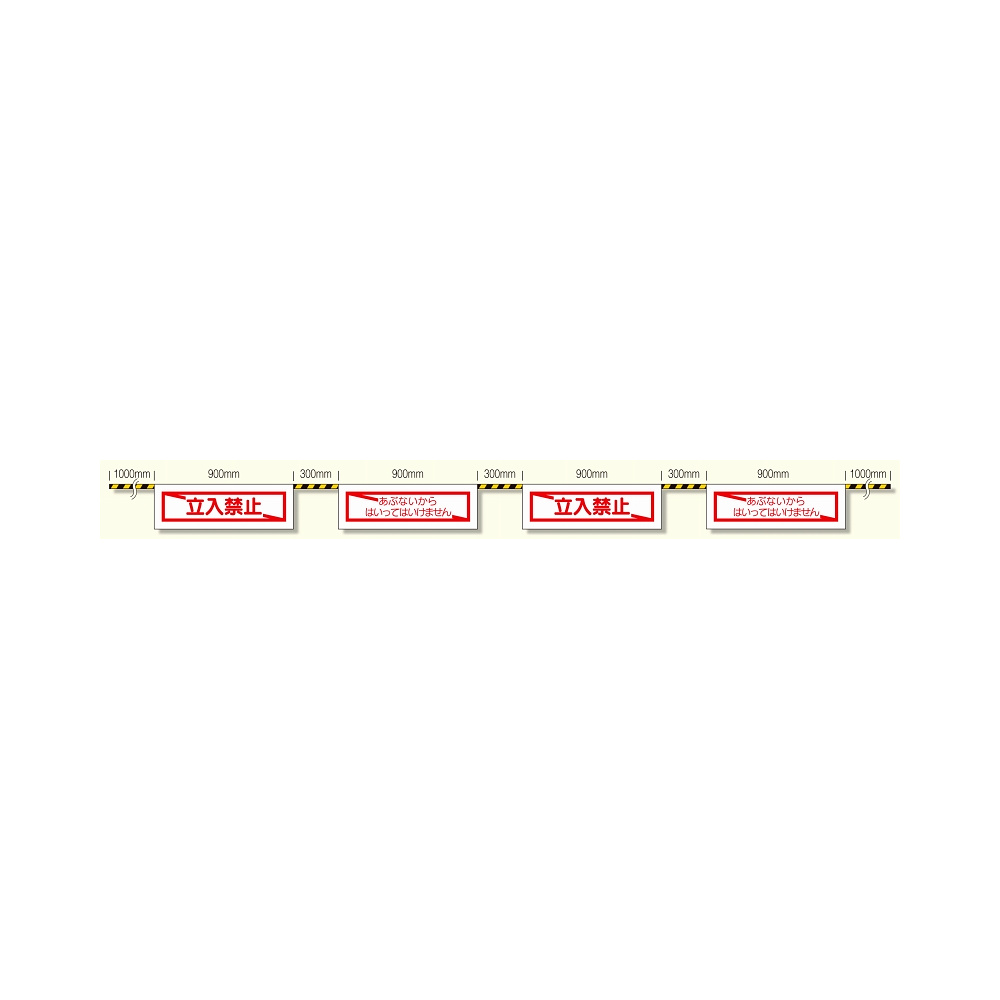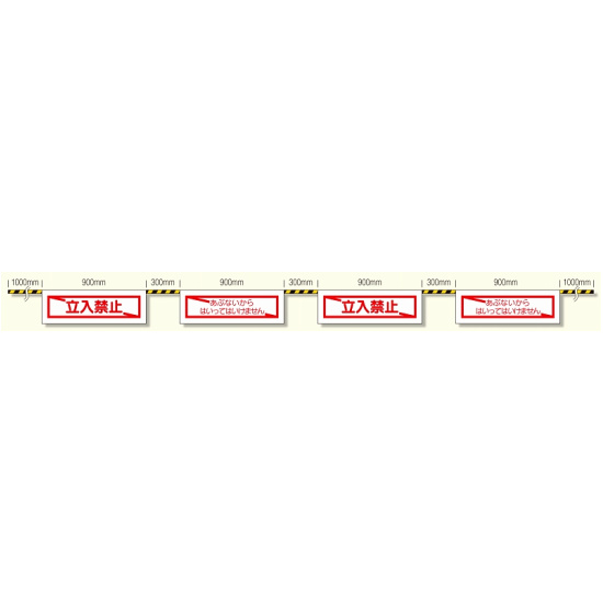 トラロープ1本に標識が4枚付いています。