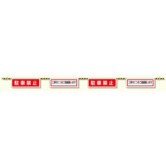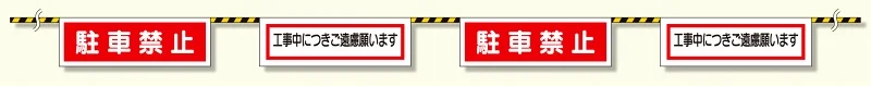 - トラロープ1本に標識が4枚付いています 駐車禁止