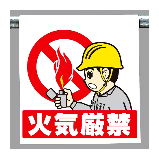 ワンタッチ取付標識 火気厳禁 人物イラスト付 (340-92)