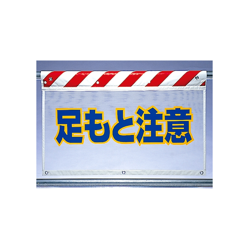 商品説明:風抜けメッシュ標識 足もと注意 (341-76)