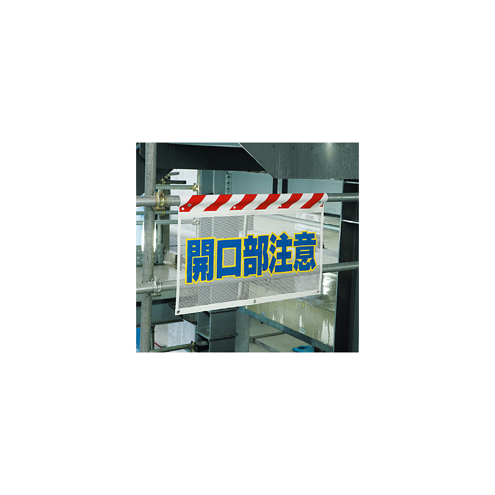 商品説明:風抜けメッシュ標識 開口部注意 (341-77)