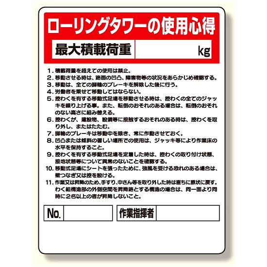 商品説明:標識 ローリングタワー使用心得 (332-02A)