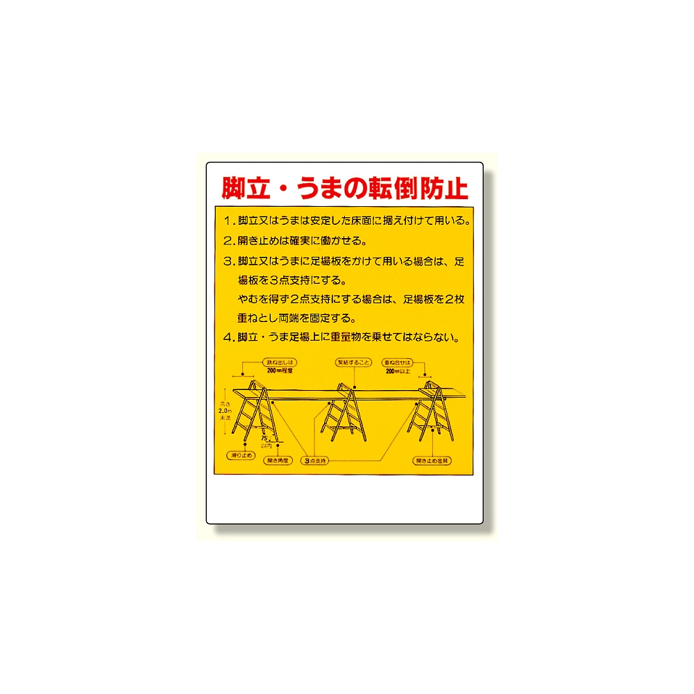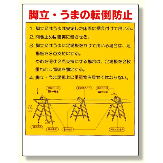 商品説明:タテ型標識 脚立・うまの転倒防止 (332-03)