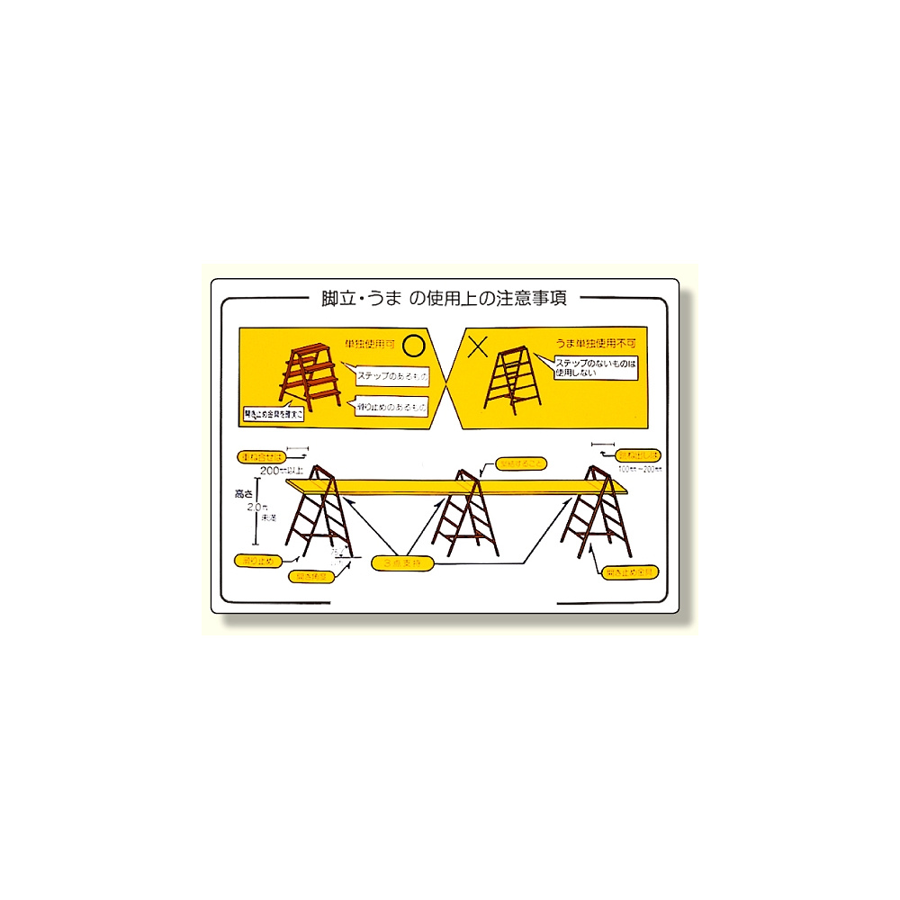 商品説明:標識 脚立・うまの使用上の注意事項 (332-05)
