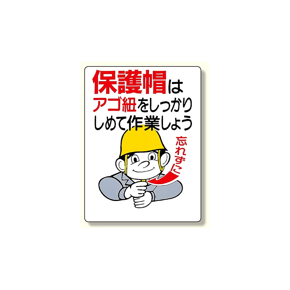 商品説明:保護具関係標識 保護帽はアゴ紐をしっかり (308-04)