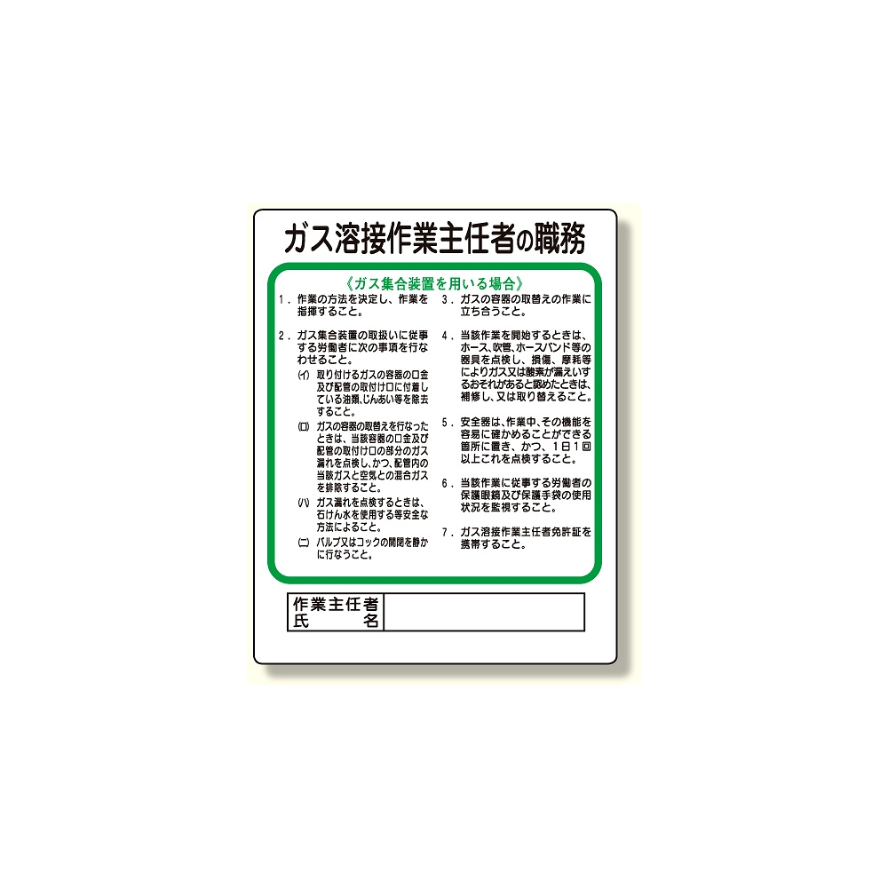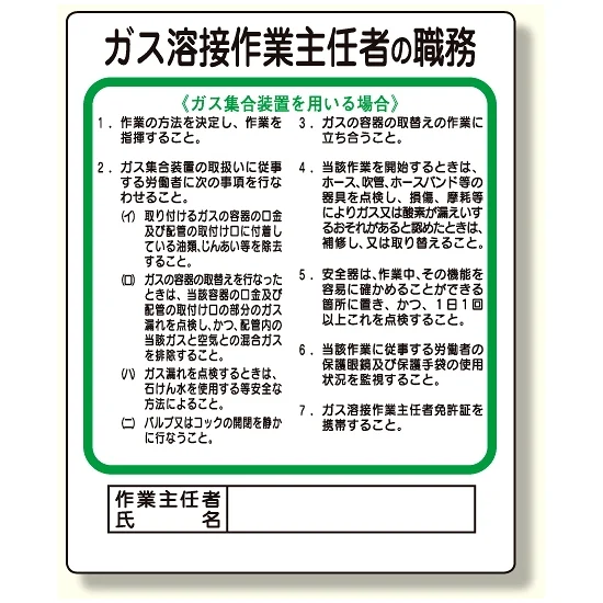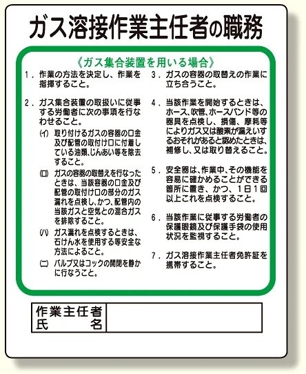 - 作業主任者職務板 ガス溶接・ガス集合装