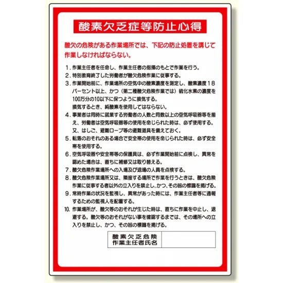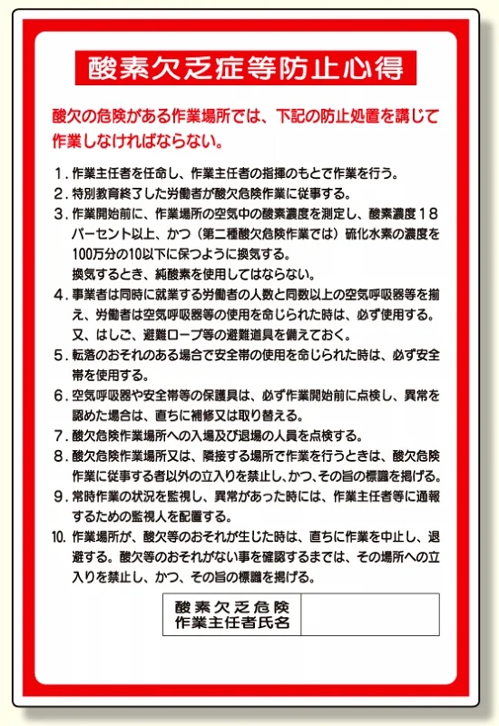 - 酸欠関係標識 酸素欠乏症等防止心得