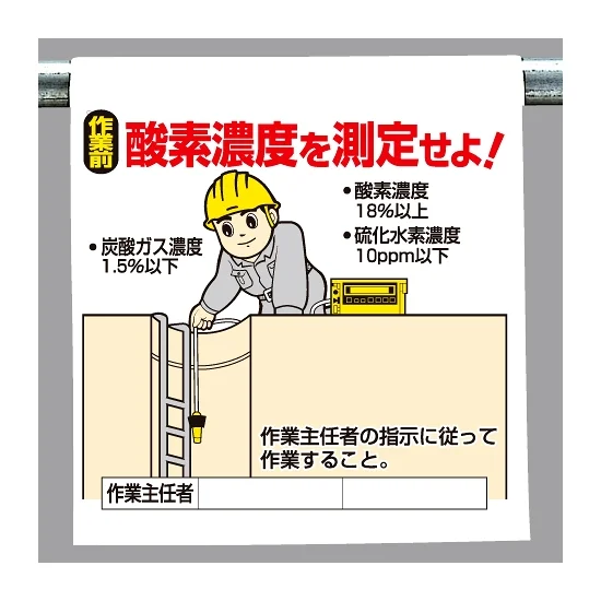 ワンタッチ取付標識 酸素濃度を測定せよ