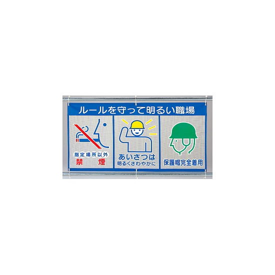 商品説明:メッシュ標識 (ピクト3連) 表示内容:ルールを守っ… (343-32)