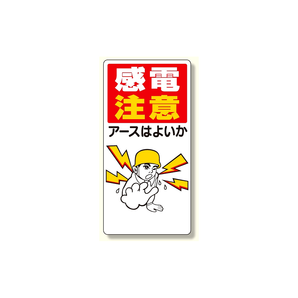 商品説明:電気関係標識 感電注意アースはよいか (325-01)