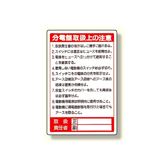 商品説明:電気関係標識 分電盤取扱上の注意 (325-26)