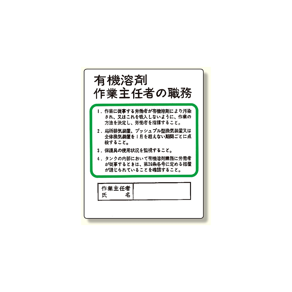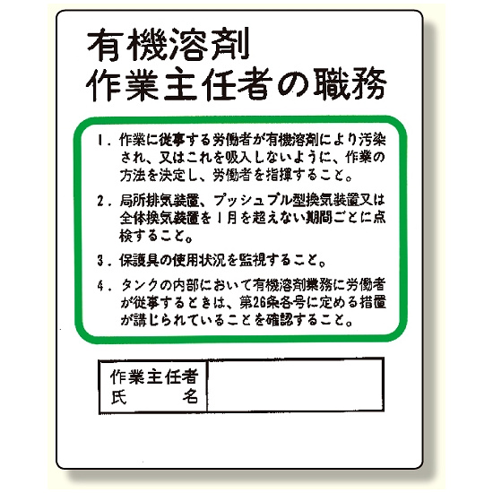 商品説明:作業主任者職務板 有機溶剤.. (356-21)