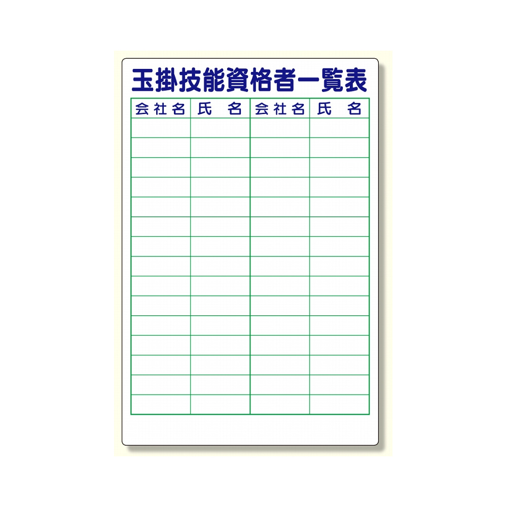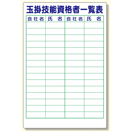 商品説明:玉掛技能資格者一覧表 (355-08)