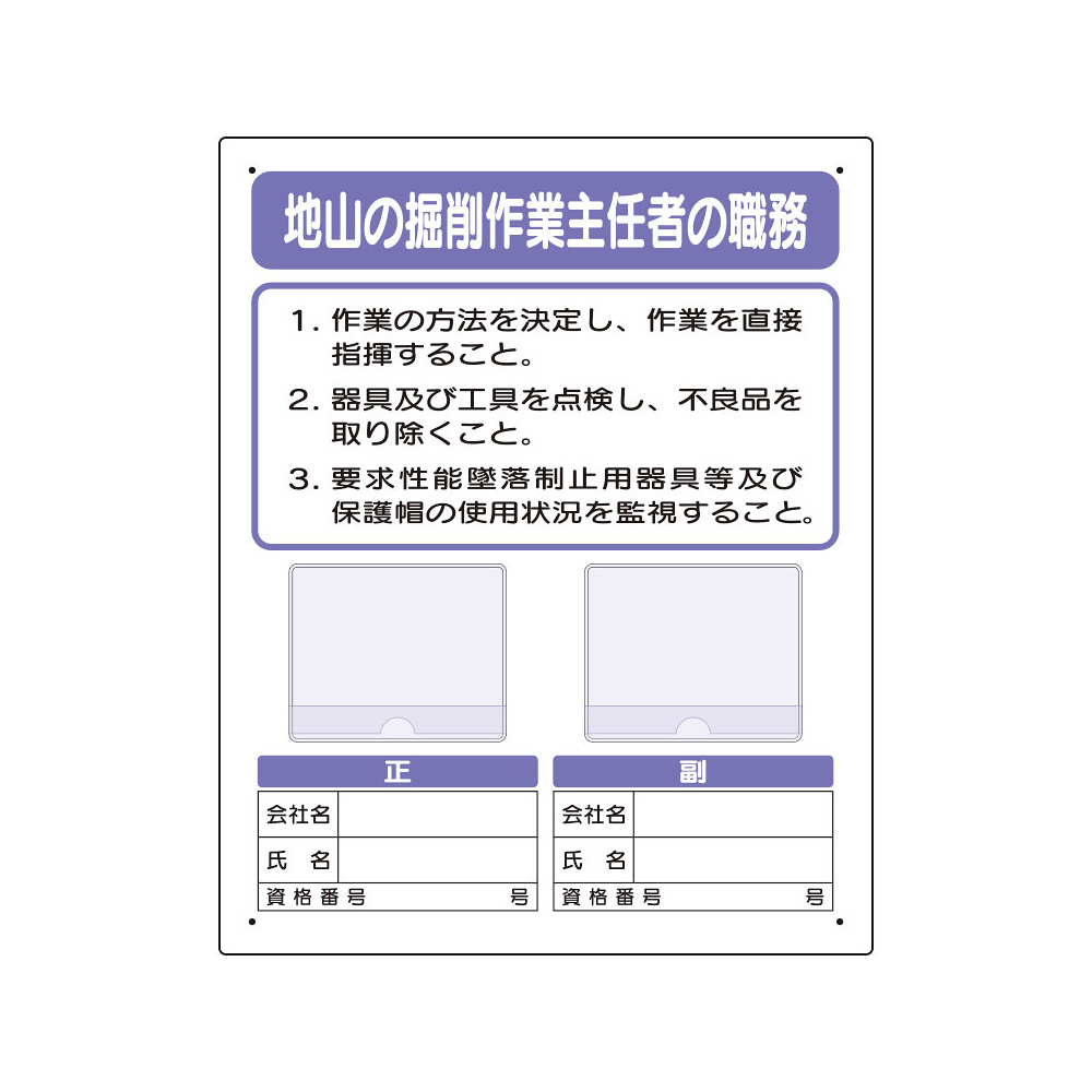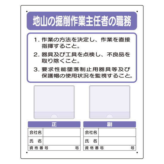 - 写真ケース付作業主任者標識 地山の掘削