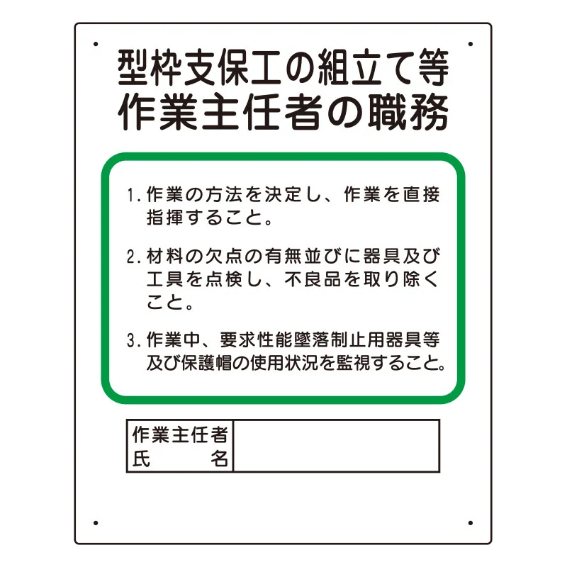 - 作業主任者職務板 型枠支保工の組立て (356-01A)