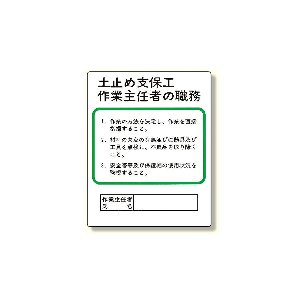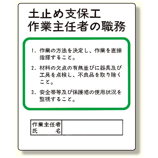 - 作業主任者職務板 土止め支保工 (356-03A)