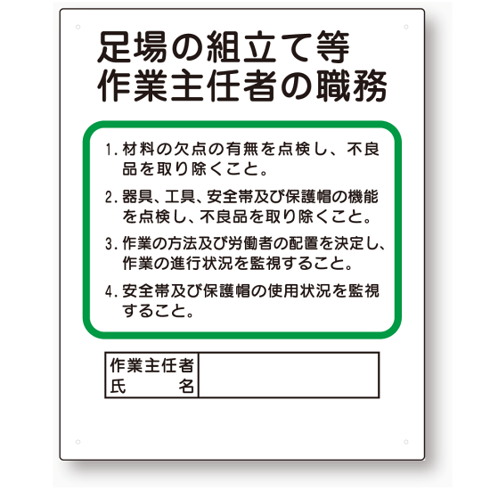 - 作業主任者職務板 足場の組立等