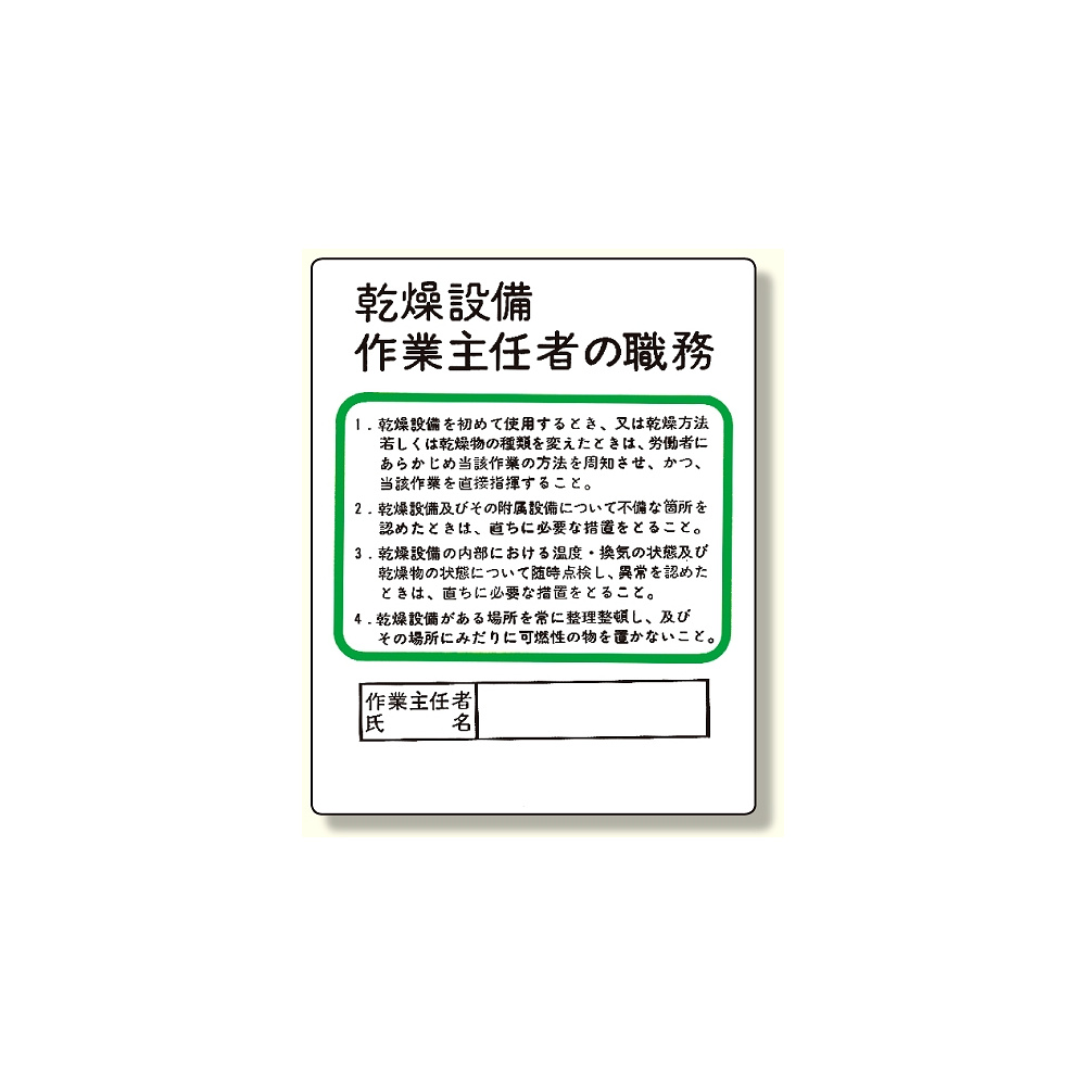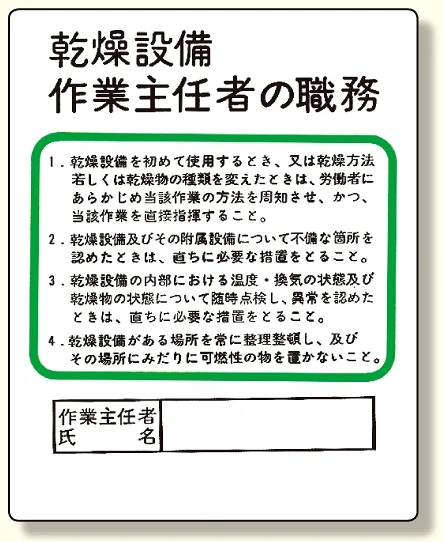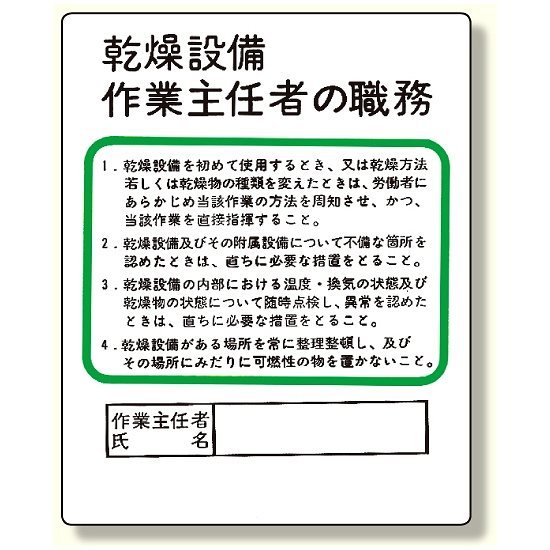 - 作業主任者職務板 乾燥設備…