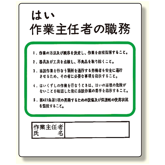 - 作業主任者職務板 はい作業主任者の職務